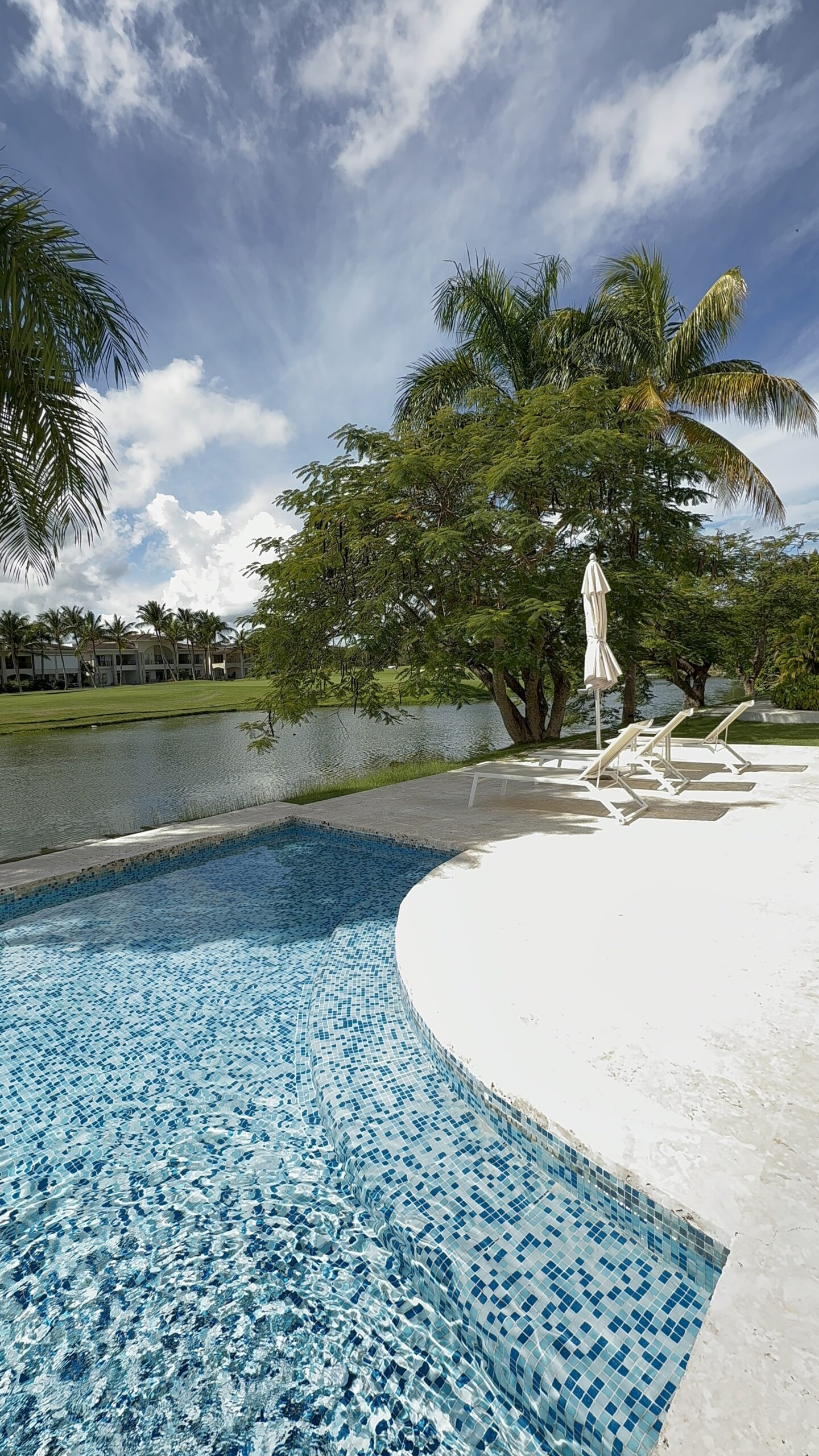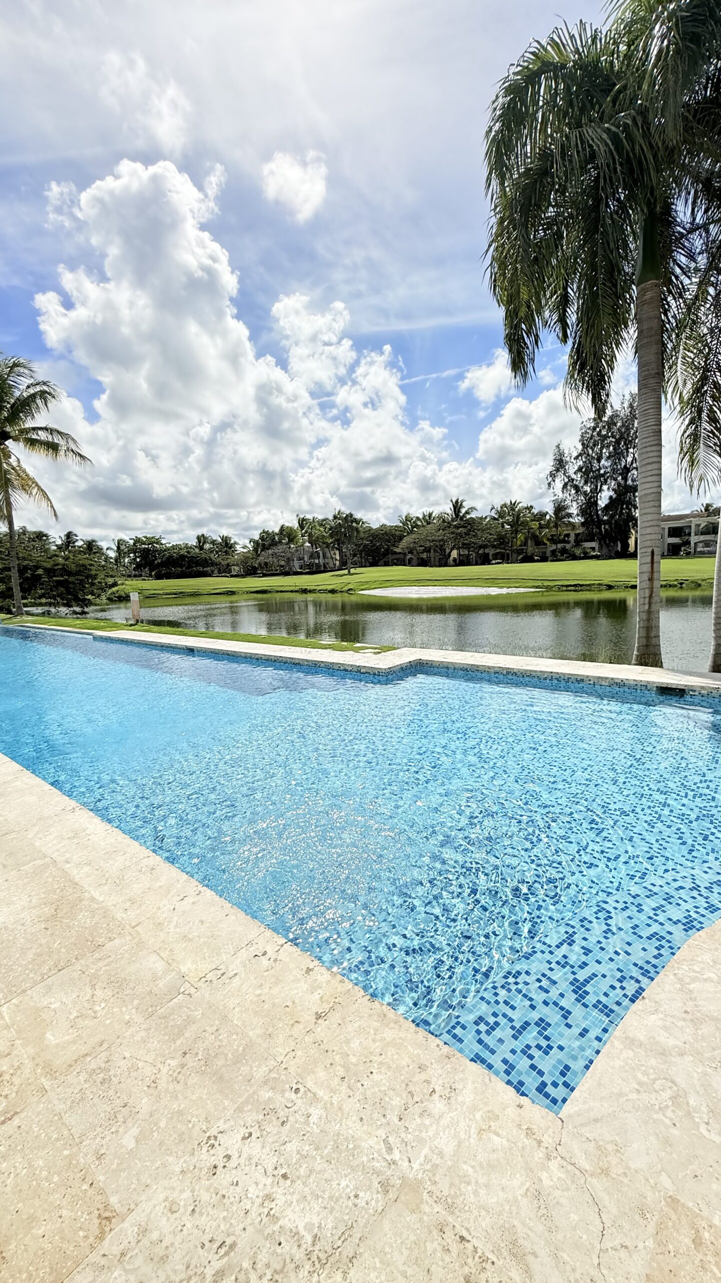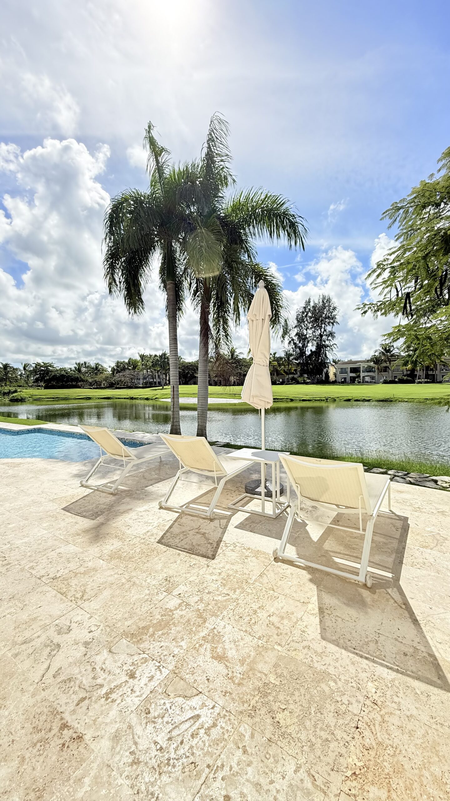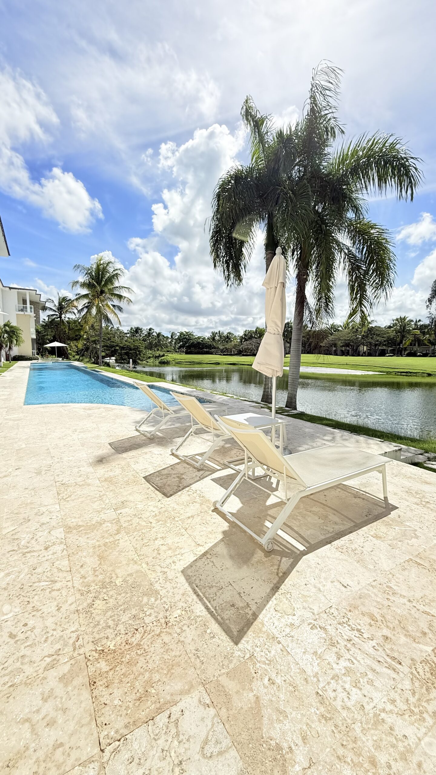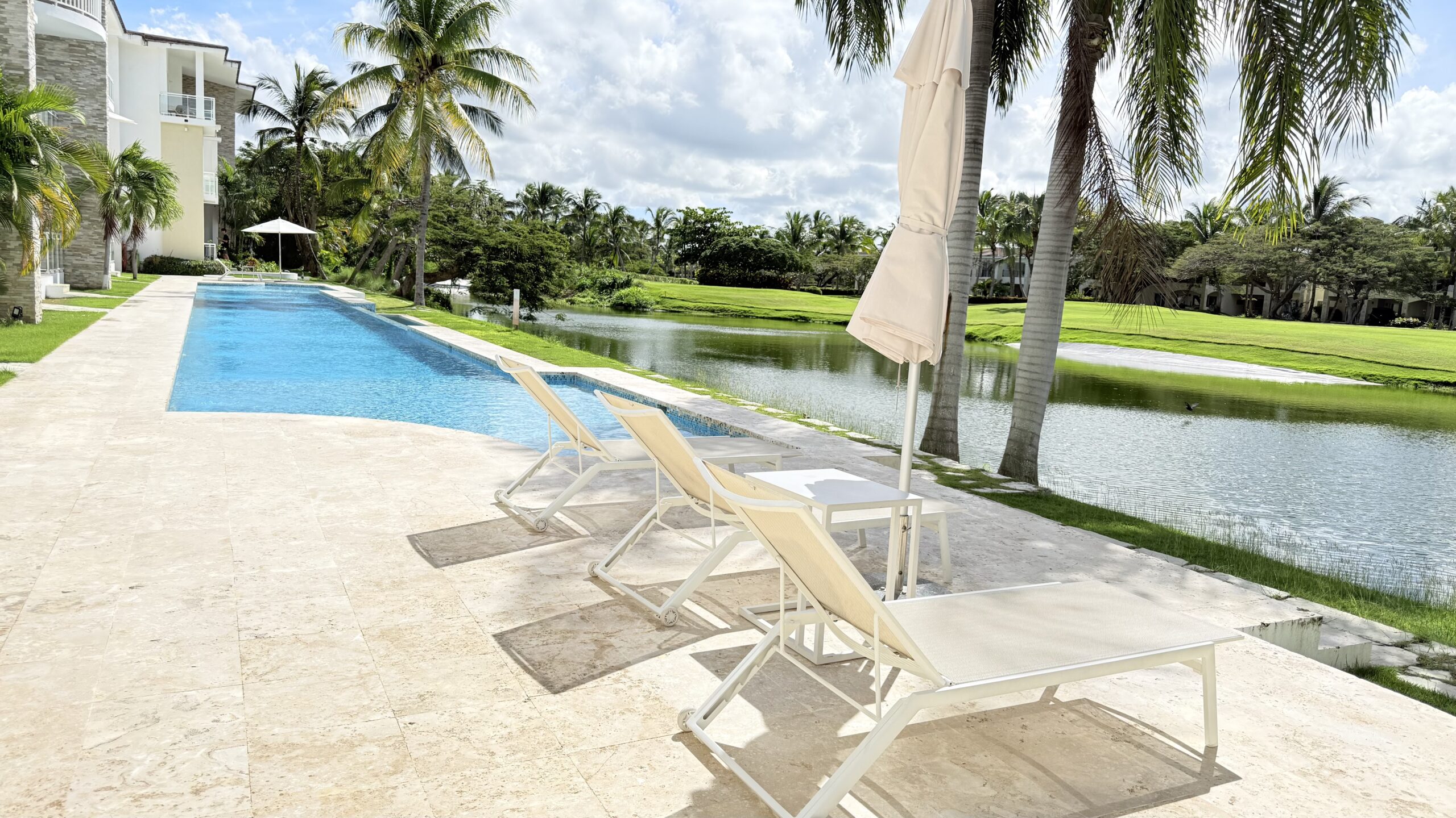 Stylish new condo, 2 bedrooms 2 bathrooms surrounded by a balcony and terrace nearby a pool and a stunning view on Cocotal lake and Golf course.